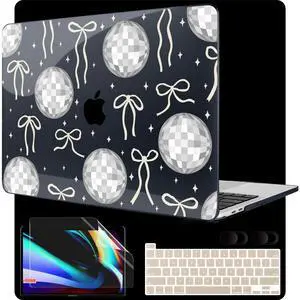 MEEgoodo Case for MacBook Pro 13 inch Case 2022 2021 2020 New A2338 M2/M1 A2251 A2289, Laptop Hard Shell with Keyboard & Camera Cover Compatible with 13 inch MacBook Pro, Silver Disco Balls & Bows