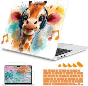 Mektron for 2025-2022 MacBook Air 13.6 inch Case M4 M3 M2Model A3240 A3113 A2681 with Liquid Retina Display Touch IDPrinted Bright Hard Shell Cover for MacBook Air 13.6"Cute Giraffe