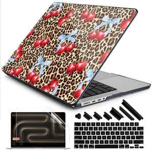 DONGKE for M4 MacBook Pro 16 Inch Case 2024 2023 2021 A3403 A3186 M3 A2991 M2 A2780 M1 A2485 Pro/Max Chip, Plastic Hard Shell Case & Keyboard Cover for Mac Pro 16 with Touch ID, Leopard & Cherry