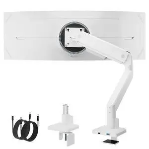 monTEK Single Monitor Arm with USB for Max 45 Inch Ultrawide Screens Adjustable Monitor Desk Mount Holds 35 Lbs Cable Management with C Clamp/Grommet Desk Mount, VESA 75/100mm, MA1007UCWH