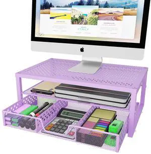 Simple Trending Metal Monitor Stand Riser and Computer Desk Organizer with Drawer for Laptop, Computer, iMac, Purple