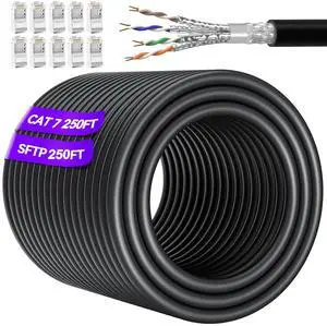 Soibke Cat 7 Outdoor Ethernet Cable 250ft (20 RJ45), SFTP Cat 7 Triple Shielded Ethernet Cable, High Speed 10Gbps 600Mhz, Direct Burial, UV Resistant, Waterproof Cat7 Cables for Router, Gaming