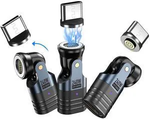 USB C Magnetic Adapter 240W(3Pack),Can Be Type-C Cord Into Right Angle Magnetic USB C Charging Cable,C Right Angle Adapters/360 &180 Degree C to C for Phone 16/15 Pad , Ma-Book Pro/Tablet, Laptop