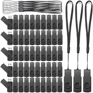 Aoriher 50 Pack USB 2.0 Flash Drives Bulk, Portable USB Thumb Drives with Lanyards, Swivel Flash Drives Thumb Drives for Office School Data Storage (Black, 128MB)