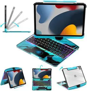 lambasa Clear Keyboard Case for iPad 10.2 inch 9th/8th/7th (2021/2020/2019) 360 Swivel Multi-Touch Trackpad, with Wireless Bluetooth 3-Brightness & 7-Color Backlit, Pencil Holder Blue
