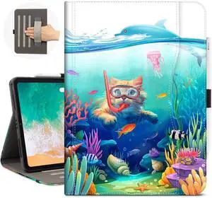 Vimorco for iPad Air M3/M2 11 Inch Case 2025/2024, for iPad Air 5th/4th Generation Cover 10.9-inch, for iPad Pro 11 Inch Case 4th/3rd/2nd/1st Generation, Pencil Holder/Hand Strap/Pocket, Diving Cat