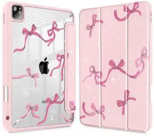 Tuiklol Case for iPad Pro 12.9 Inch M2 Case 2022 2021 2020 2018 Generation 6th/5th/4th/3rd,Built-in Pencil 2nd Holder Clear Transparent Protective Back Shell Cover,Bow-Pink