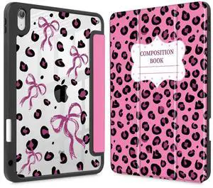 Mektron Case for 2025 iPad 11 inch (A16 Chip) 11th Gen Fit iPad 10th Gen10.9 inch 2022, Buit in Pencil Holder with Shockproof Cover Clear Shell + Trifold Stand + Auto Wake/Sleep, Composition Book-Bows