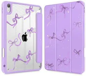 May Chen for iPad (A16) 11th Generation Case 11 Inch 2025, iPad 10th Gen Case 2022 10.9 inch, Built-in Pencil Holder with Shockproof Cover Clear Transparent Back Shell Auto Wake/Sleep, Bows Purple