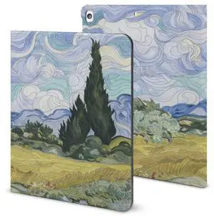 Niapessel for iPad 9th Generation Case/for iPad Air 5th Generation Case/for iPad Pro 11 Inch, Wheat Field Van Gogh Print with Pencil Holder & Stand (TPU Leather)