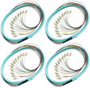 Bangun 4Pack LC UPC 12 Fibers Multimode Bunch OM3 50/125 LC-UPC Fiber Pigtail, 1.5m (5ft)