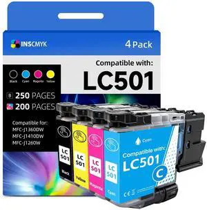 INSCMYK LC501 Ink Cartridges for Brother Printer Compatible for Brother LC501 Ink Cartridges LC501 Series Inks for Brother MFC-J1360DW MFC-J1410DW MFC-J1260DW (4 Pack