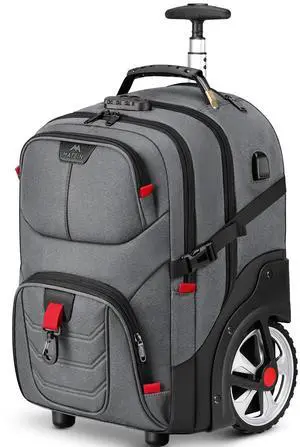 MATEIN Rolling Laptop Bag with Larger Wheels, 17 Inch Roller Back Packs with Anti Theft Lock & USB Charging Port for Adults Men, Heavy Duty Rolling Large Carry On Luggage for Office Work Travel, Grey