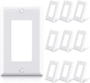Decorative Receptacle Wall Plate 1-Gang Standard Size Decorator Covers Unbreakable Polycarbonate Faceplates for Decorator Device UL Listed Screws Included (10 Pack Glossy White)