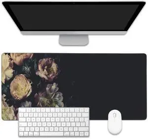 CANFLASHION Black Wildflower Large Desk Mat - 31.5"x11.8" Non-Slip Waterproof Computer Mouse Pad,Washable Fabric Surface with Rubber Base for Office & Home Use,Extended Keyboard Mat(300x800x3mm)