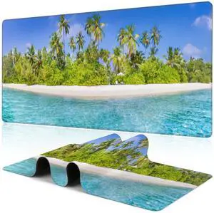Tropical Nature Landscape Desk Mat,Large Summer Beach Seawater and Palm Trees Gaming Keyboard Mouse Pad,Non-Slip Rubber Base Desk Pad Thick Stitched Edges Waterproof Mousepad Mouse Mat 31.5"x11.8"