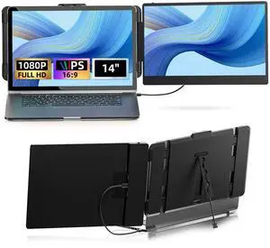 Zerfis Laptop Screen Extender, Ultra-Thin 14" FHD 1080P Portable Monitor for Laptop, 2.2lbs Lightweight Triple Monitor Extender Plug & Play for 13"-17" Laptops, Compatible with Wins/Mac/Android/Chrome