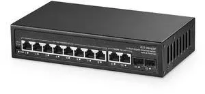 Binardat 12 Port Gigabit POE Switch, 8 POE+ Ports 1000Mbps, 2 Gigabit Uplink, 2 Gigabit SFP, IEEE802.3af/at, 135W Power Supply, Metal Case Unmanaged Plug and Play