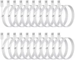 weishan 20-Pack Bulk USB C Charger Cable - Multipack Type-C Charging Cords, USB 2.0 for Phones and Tablets, 3.3ft White