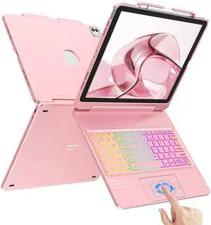 Swivel Keyboard Case for iPad pro 13 Case with Keyboard(M5/M4, 2025/2024)&& iPad Air 13 inch case(M3, 2025/M2, 2024) &iPad Pro 12.9 (6th/5th/4th/3rd Gen),Trackpad,Rainbow Backlit (Pink)