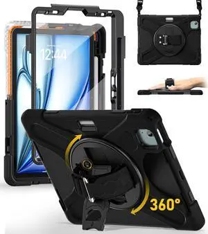 BRAECN for iPad Air 11 inch Case 2025(M3) 2024(M2),iPad Pro 11 inch(4th/3rd/2nd/1st)& Air 10.9"(5th/4th) Case Protective with Pencil Holder Screen Protector 360°Rotating Stand Handle Full Body Cover