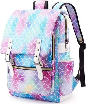 FEWOFJ Mermaid School Backpack for Girls, 15.6" Laptop Backpacks College School Bookbags Casual Daypack