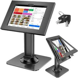 AboveTEK Anti-Theft iPad Kiosk Stand POS iPad Security Mount with 360 Swivel & 75 Tilt, Heavy Duty Tablet Kiosk Desk Holder for Retail & Business POS Systems (Black)