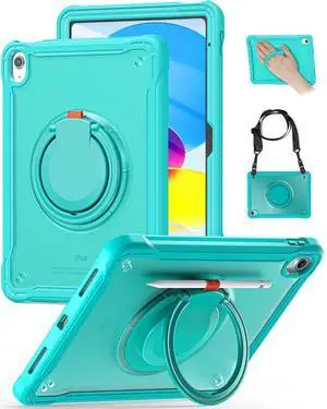 BRAECN for iPad (A16) 11th/10th Generation Case 11 inch 2025/10.9'' 2022 Handle Protective Cover 360 Rotating Ring Stand, Shockproof Dropproof Case for Kids Kickstand & Pencil Holder & Shoulder Strap
