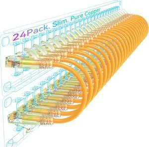 Sokqovt Cat6a Patch Cables Slim 5ft (24 Pack), Flexible Cat6 Ethernet Patch Cable 10G 550MHZ, 28AWG Pure Copper Cat6 Patch Cable for Network Cabinet, Cat 6 Patch Cable Orange