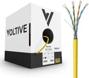 Voltive Cat6 Riser (CMR), 1000ft, Yellow - Solid Bare Copper Bulk Ethernet Cable - UTP - 600MHz - UL Certified & ETL Verified