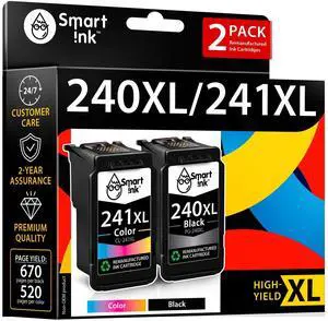 Smart Ink Remanufactured Ink Cartridge Replacement for Canon 240 XL 241 XL 240XL 241XL for Canon Pixma MG3620 MX472 TS5120 MX452 MG3220 MG3520 MX432 MG2120 MG2220 Printer (Black & Color Combo Pack)