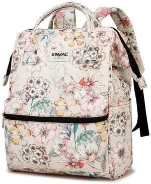Kinmac Wide Open Style Laptop Backpack for Laptop Up to 15.6 Inch Men Women Travel Outdoor Backpack (Floral)