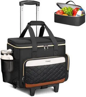 Ytonet Rolling Teacher Bag with Insulated Lunch Carrier, 15.6" Rolling Laptop Bag Women with Detachable Dolly, Large Roller Briefcase for Women Roller Tote Bags for Teacher Work Office Nurse Craft