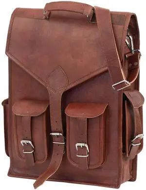 Shy Shy Lets Touch The Sky Brown Vintage Leather Backpack Laptop Messenger Bag Rucksack Sling for Men and Women (13"X18")