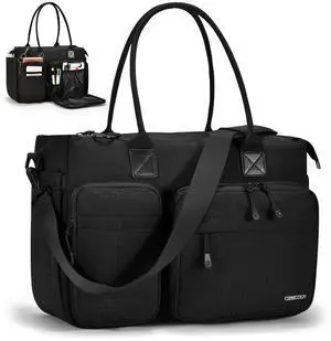 LOVEVOOK Laptop Tote Bag for Women Work, Teacher Tote & Nurse Bags with Zipper for Travel, Daily, College,Large Purse Computer Shoulder Handbag With Multi Pockets Black