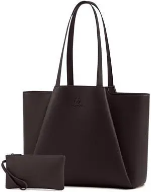 LOVEVOOK Laptop Tote Bag for Women - 15.6 Inch Faux Leather Work Tote Bag For women with Clutch, Large Capacity Office Purse for Casual Business Travel, Coffee