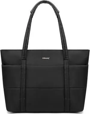 Kinmac Computer Tote Bag for Women, Large Capacity Laptop Tote Handbag for Work Office Travel (Black Grid)