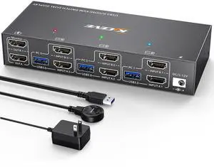PVBCTCSID HDMI KVM Switch 2 Monitors 4 Computers EDID 4K60Hz for 4 PC Sharing Dual Monitor and 4 USB 3.0 Devices with Controller