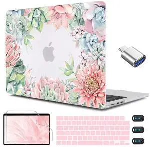 CISSOOK Compatible with MacBook Air 13.6 Inch Case 2022 2024 2025 Release M2 M3 M4, Succulent Plants Cover with Keyboard Cover USB Adapter for MacBook Air 13.6 inch A2681 A3113 A3240- Succulents