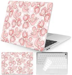 Seorsok Compatible with MacBook Air 13 Inch Case 2022 2021 2020-2018 Release A1932 A2179 M1 A2337,Smooth Plastic Hard Case with Transparent Keyboard Cover,Abstract Art Pink Bows and White Dots