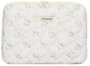 Attria Fairycore Laptop Case for Women Floral Carrying Tablet Bag Cover Puffy Quilted Computer Liner Bag 11-15.6 Inch (13-14 Inch,White)