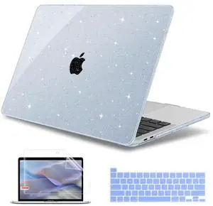 May Chen Compatible with MacBook Pro 13 inch Case 2022 2021 2020 Release Model A2338 M2 M1 A2251 A2289, Hard Shell Case with Keyboard Cover for MacBook Pro 13 Touch Bar Fits Touch ID, Blue Glitter