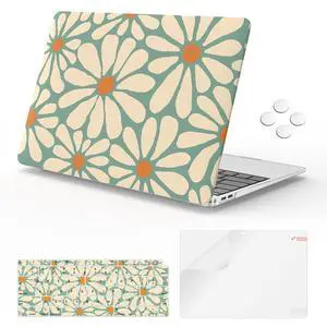 iLeadon Compatible with MacBook Air 13.3 inch Case 2022, 2021-2018 Release A2337 M1 A2179 A1932, Plastic Hard Shell&Keyboard Cover&Screen Film for MacBook Air 13 inch Case, Green Daisy