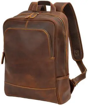 Miracttld Leather Backpack for Men 15.6" Laptop Backpack 100% Madagascar top-Grain Leather Backpack Brown Medium Size