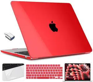 TWOLSKOO Compatible with M4 MacBook Air 15 inch Case 2025-2023 Release M4 A3241 M3 A3114 M2 A2941, Plastic Hard Shell&Screen Protector&Keyboard Cover&Trackpad Film&Type C Adapter, Crystal Red