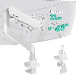 WALI Heavy Duty Single Monitor Arm for 17-49 Inch Flat Curved Ultrawide Screens, up to 33 Lbs, Adjustable Gas Spring Single Monitor Desk Mount for Home Office Gaming, VESA 75/100mm (GSM001XLNW), White