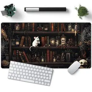 Dark Witchy Desk Mat Gaming Desk Pad Large Mouse Pad, Magician'S Fantasy Bookcase Gothic Mouse Mat XXL Laptop Keyboard Pad, Laptop Keyboard and Mouse Mat Desktop Protector Mat 31.5 X 15.7 in