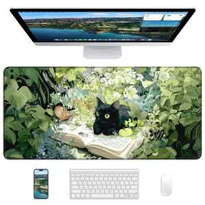 Velluxion XL Gaming Mouse Pad, 31.5x17.5'' Large Desk Mat with Anti-Slip Rubber Base & Stitched Edges for Gaming, Office, Home - Reading Cat