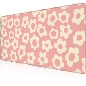 Mouse Pad, Large Pink Groovy Flowers Desk Mat, Extended Non-Slip Gaming Keyboard Mousepad Desk Pad, Thick Stitched Edges Waterproof Mouse Mat 31.5"x15.7" (Vintage Floral)