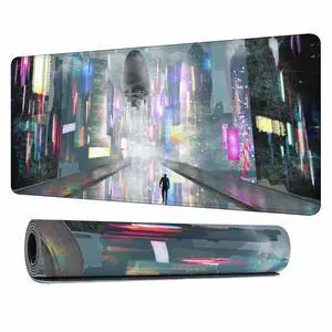 Y YIHANGBEST Cyberpunk Cityscape Mouse Pad Keyboard Mat Neon Futuristic Urban Sci - Fi Large Gaming Mousepad for Desk,Computer,Office 35.4"X15.7"